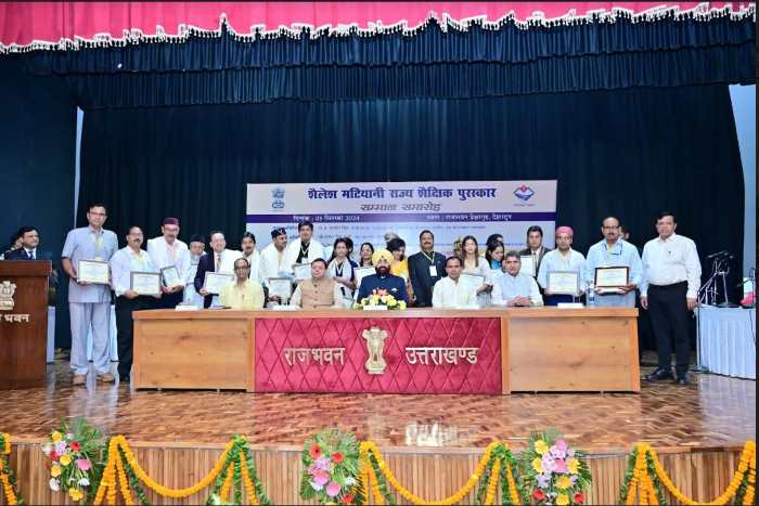 राजभवन : ‘‘शैलेश मटियानी राज्य शैक्षिक पुरस्कार’’ सम्मान समारोह में राज्यपाल लेफ्टिनेंट जनरल गुरमीत सिंह (से नि), मुख्यमंत्री पुष्कर सिंह धामी और शिक्षा मंत्री डॉ. धन सिंह रावत ने वर्ष 2023 में शैलेश मटियानी राज्य शैक्षिक पुरस्कारों के लिए चयनित शिक्षक एवं शिक्षिकाओं को सम्मानित किया। शिक्षक दिवस के अवसर पर राजभवन में आयोजित सम्मान समारोह में वर्ष 2023 के लिए चयनित 19 शिक्षकों एवं शिक्षिकाओं को पुरस्कार प्रदान किए गए है। (सूची संलग्न)