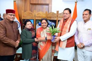 Uttarakhand CM धामी ने विधानसभा अध्यक्ष ऋतु खंडूड़ी भूषण से शिष्टाचार भेंट की By Kedar News - February 18, 2025 Share on Facebook Tweet on Twitter मुख्यमंत्री पुष्कर सिंह धामी ने मंगलवार को विधानसभा में विधानसभा अध्यक्ष ऋतु खंडूड़ी भूषण से शिष्टाचार भेंट की। इस अवसर पर कैबिनेट मंत्री प्रेमचन्द अग्रवाल, विधायक खजान दास और पार्वती दास भी मौजूद थे।